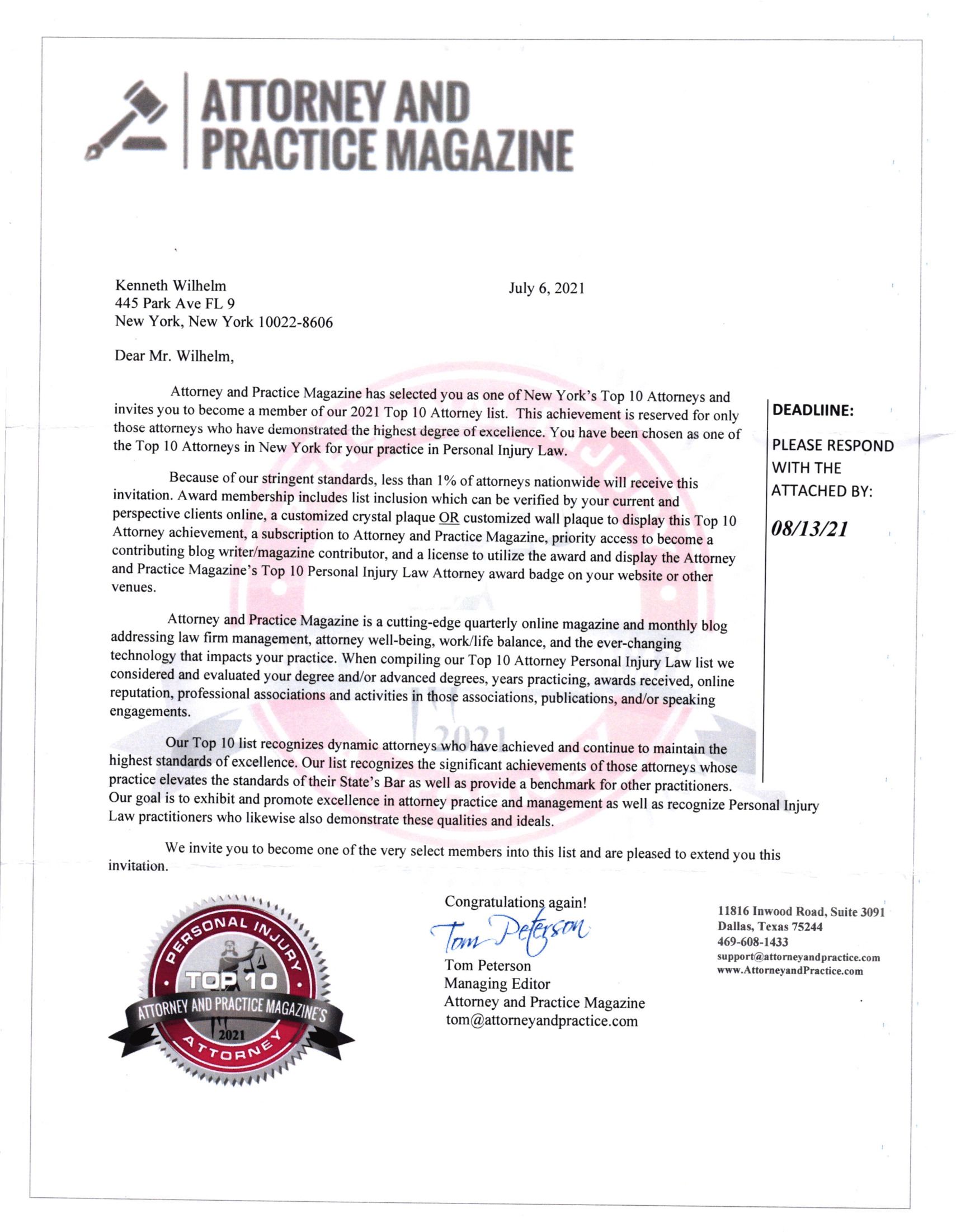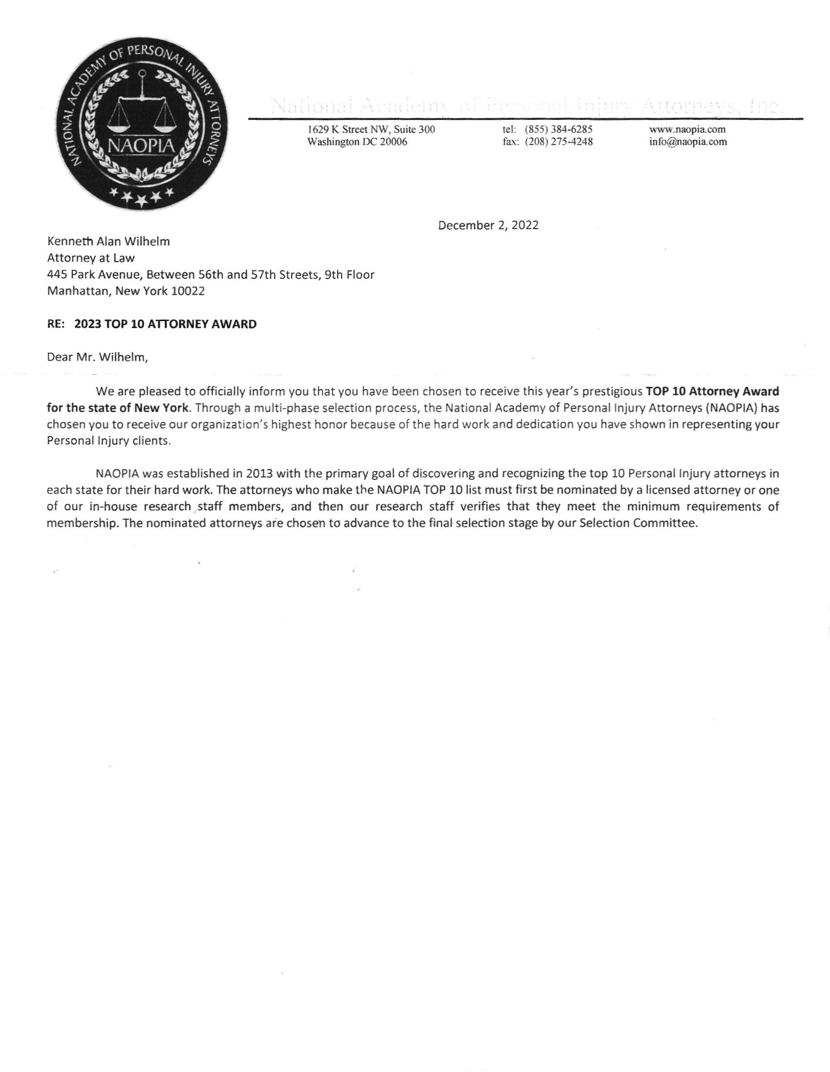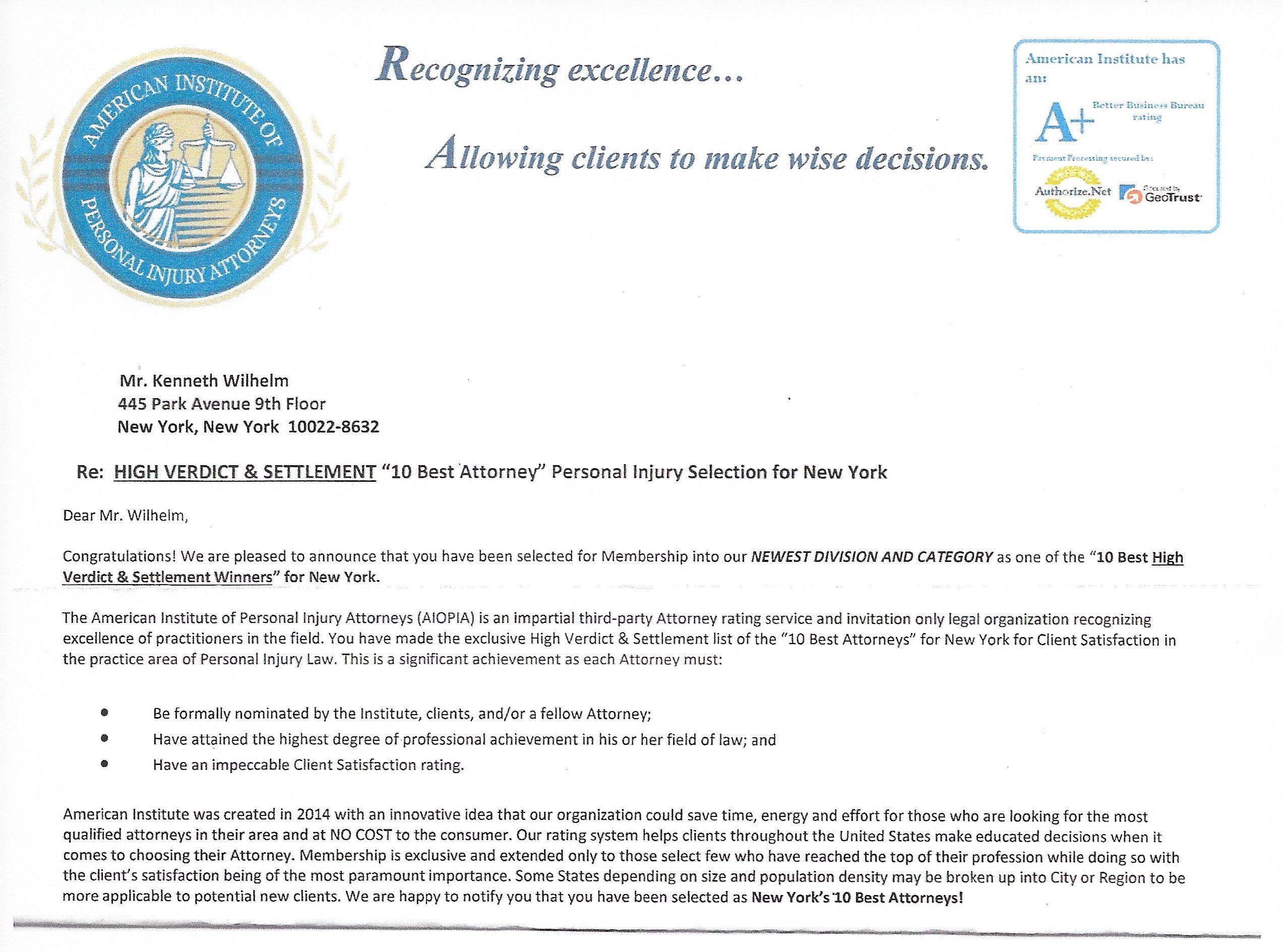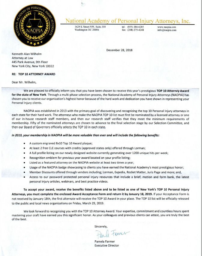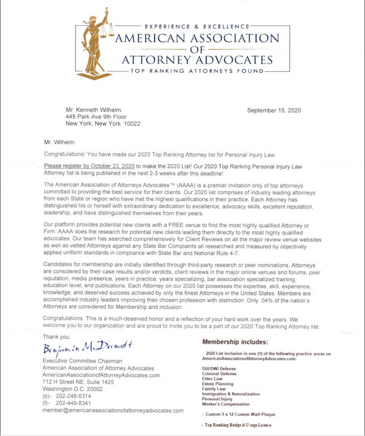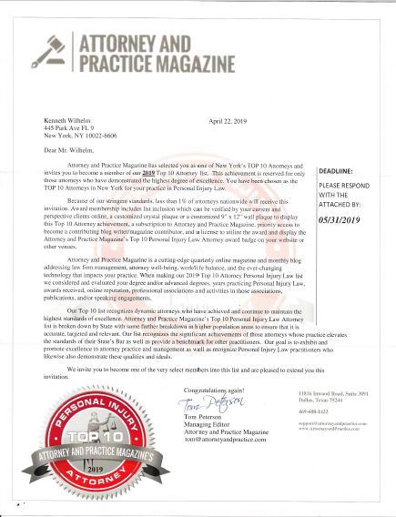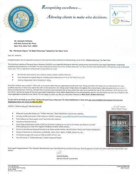 BEST NEW YORK ATTORNEY KENNETH WILHELM – AWARDS, TOP RATED AND RECOGNITION